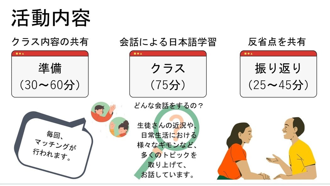 また、自分の話す日本語がこんなに難しいの!?と気づいて、日本語を勉強するきっかけになったり、新しい出会いと発見がたくさんあります!