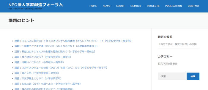 NPO法人学習創造フォーラム(FILC)のWebサイトでは、コロナによる一斉休校を受け、探求学習のヒントを提示するページを特設しました。