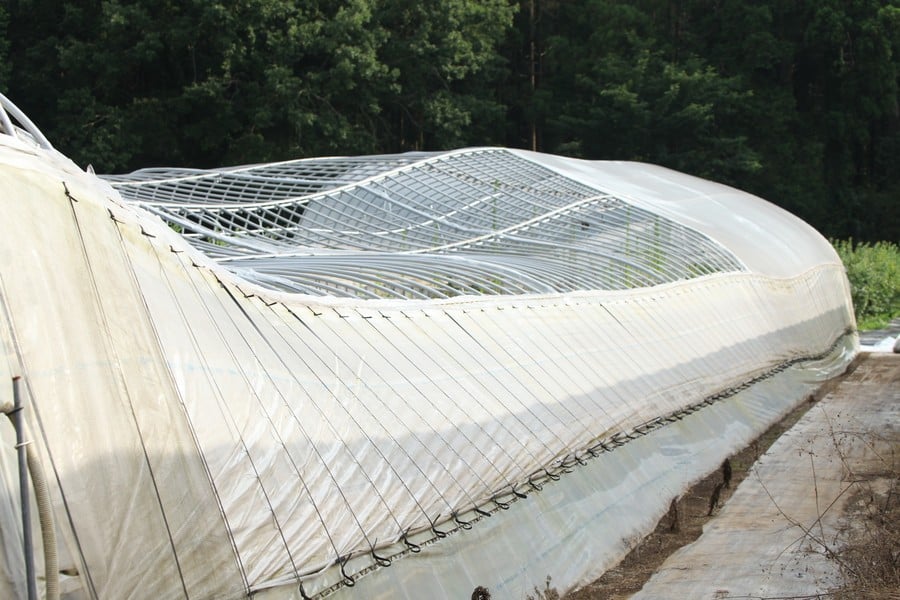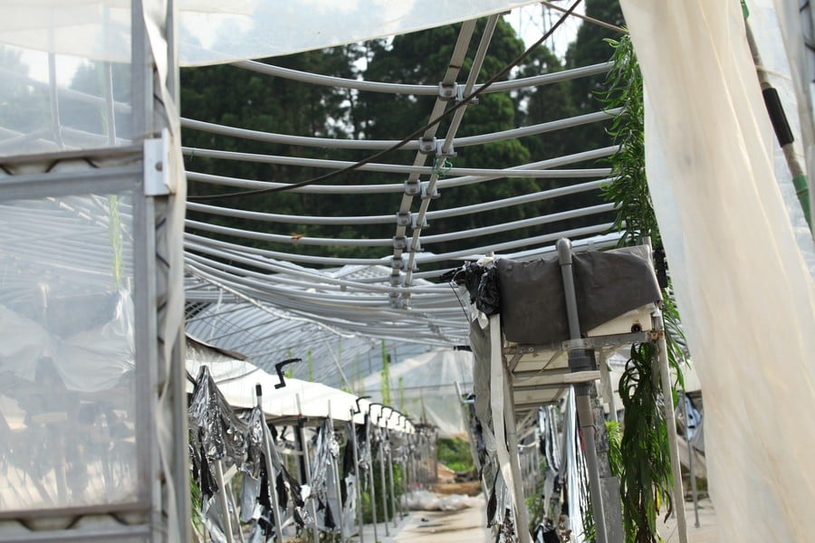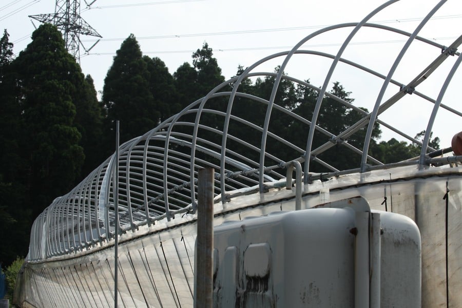 去年の台風19号で潰れたビニールハウスや鳥よけのネットなどの解体も終わらず、そこに新型コロナ。