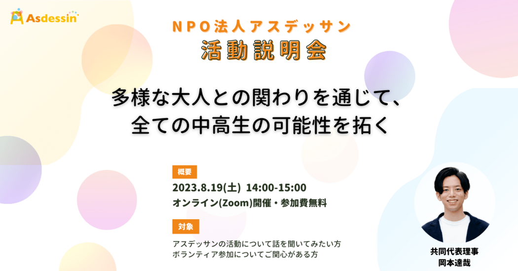 【活動説明会◆オンライン】中高生のキャリア教育を支援するNPO