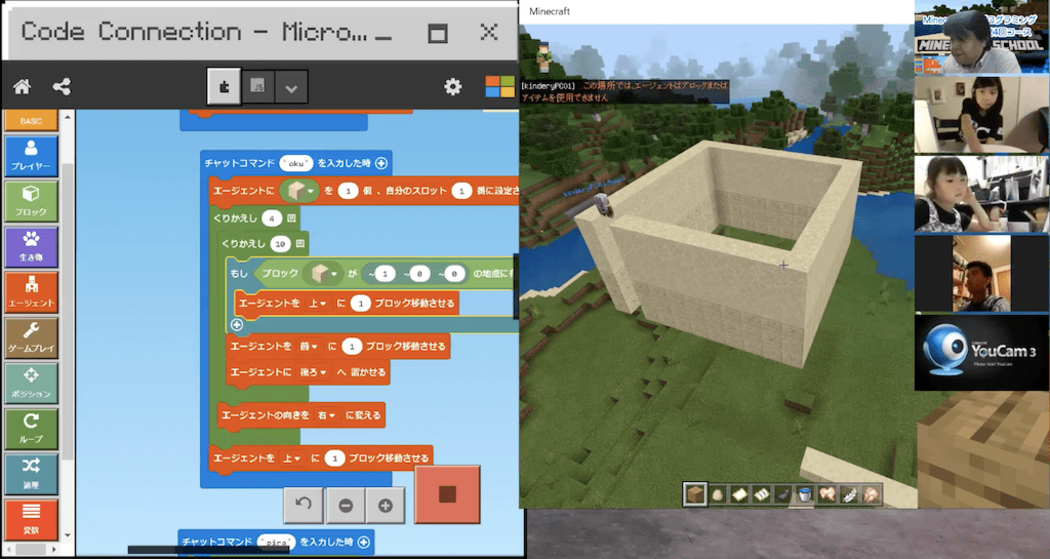 Minecraftの世界観で楽しみながら、プログラミング的思考を育むことができます。