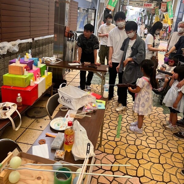 地域の核は子どもであるという考えから、子育て世代を対象に子ども向けのワークショップを出店し子どもを笑顔に、そこから周りの大人・地域を笑顔にし、八尾の地域活性化につなげていこうという思いで活動しています。