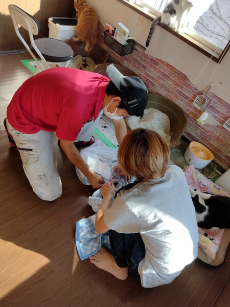捕獲のお手伝いや、日々の施設の清掃などの活動をしています。