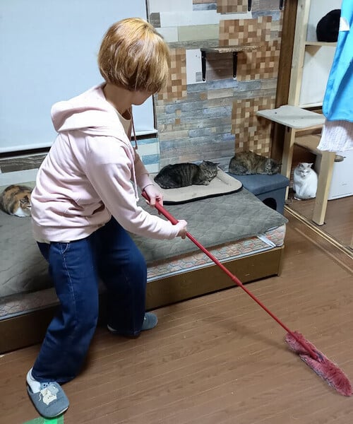 掃除中も自然と猫達に話しかけながら動いていて、とにかく気持ちが癒される空間です。