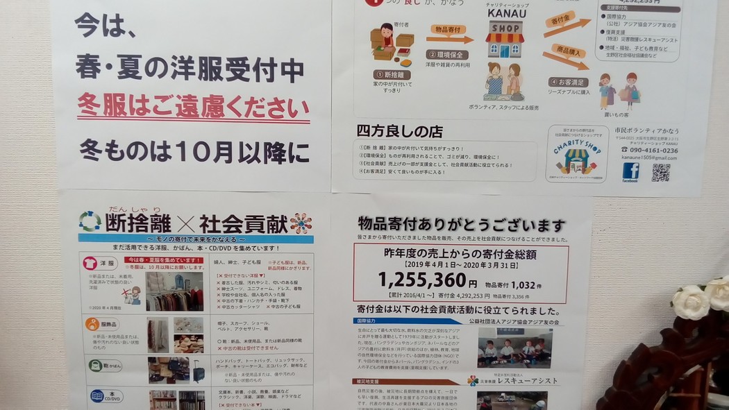 こちらは、生野本通中央商店街で営業しているチャリティショップKANAUです。