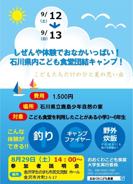 しぜんや体験でおなかいっぱい!石川県内こども食堂団結キャンプ!