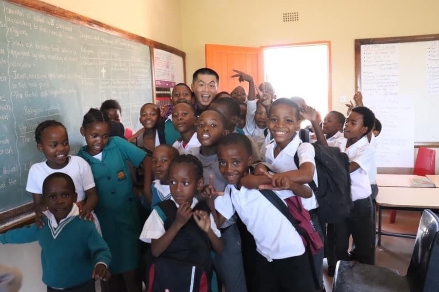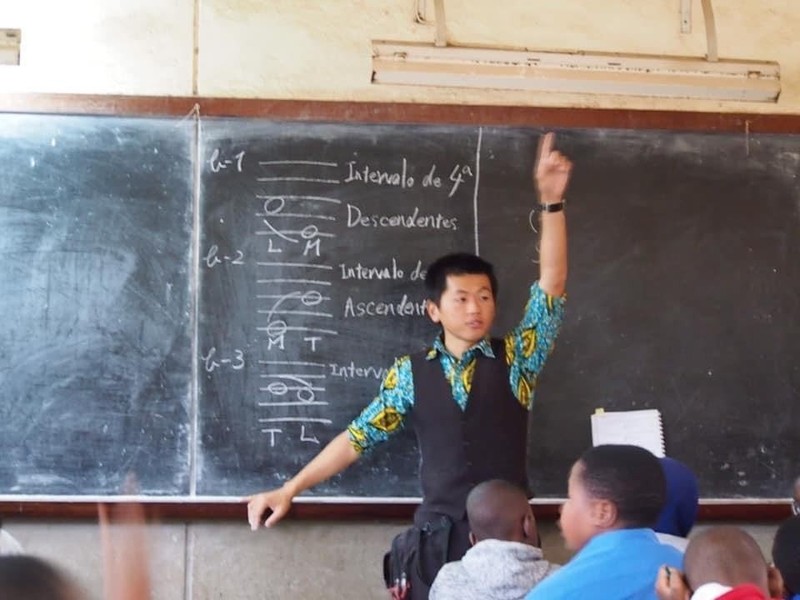 配属先の「東洋の星小学校」は日本の支援で設立された学校です。同僚の先生と一緒に6〜7年生向けに音楽の授業を行なっていました。
