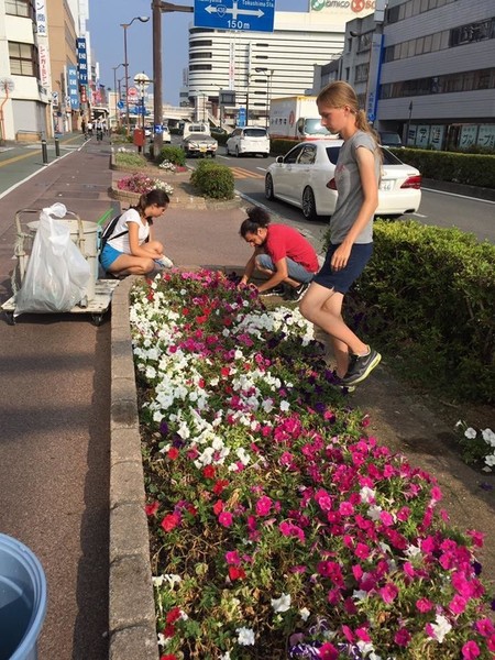 2012年から毎年8月に短期ワークキャンプも行う。「まちでまなび、まちをあそぶ」をコンセプトに色々な授業やイベントを実施する。2014年から徳島市内で素敵な地域をつくろう!花を植えよう!という発案があり、市民の手で花を植え、水をやり、草を抜いて花ロードを運営することになった。植物園とまではいかないが、毎日水をやり、草を抜き、存在感のある花壇づくりを目指している。花の植え替えはイベントにしているので100名以上の地域の人が参加するが、日々の水やりや草抜きはマンパワーが不足。中長期ボランティアが活動することで、一緒に花壇の運営をやっていくことを目指す。