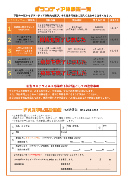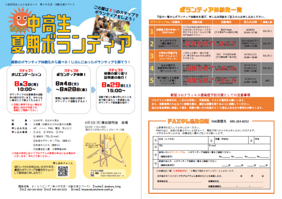 【ステップ2】ボランティア体験活動 8月4日~8月28日