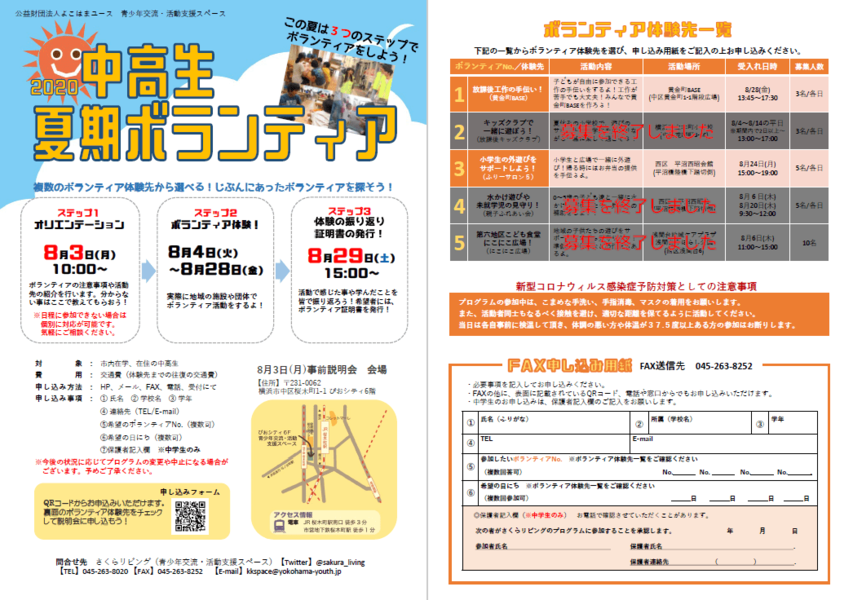 - 中高生夏期ボランティア2020!