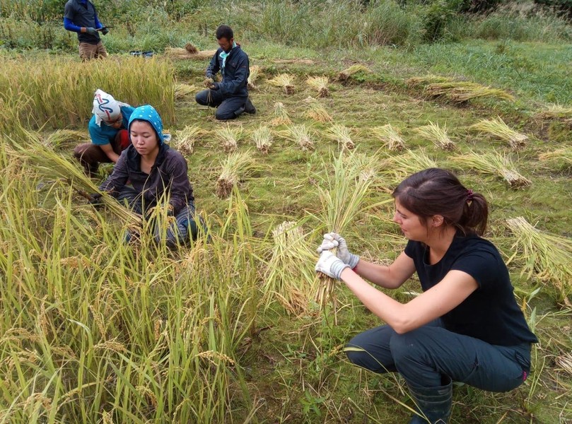 真木共働学舎と共催で、短期は2000年、中長期ボランティアは2006年から開催。共働学舎は1974年設立。競争社会から協力社会への転換を目指し、農業を学びたい人、障がい者、引きこもり等、様々な人々・約120名が北海道・長野・東京の共同体で暮らしながら、有機農業や畜産に取り組む。かつては100名程が住んだ標高900mの真木集落は、町へは急な山道の徒歩(4km)でしか行けず、1970年代に廃村になった。その後、共働学舎の人達が住み込み有機農業や屋根の萱葺きに取り組む。不便であることを逆手に取り、夏に保育専攻学生の教育実習や青少年の合宿を受け入れる。NICEのボランティアには、人手が必要な作業への協働と共に、孤立した地域への新しい風としても期待し、成果も生まれてきた。