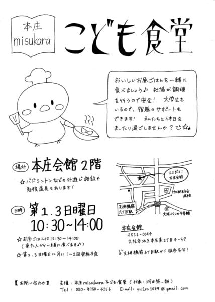 2019年7月に発足した学生団体で、「本庄子ども食堂」の活動を通して学習支援や食育などを行っています。