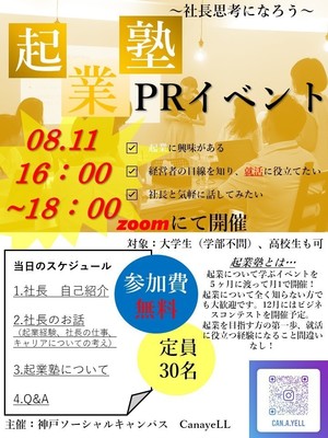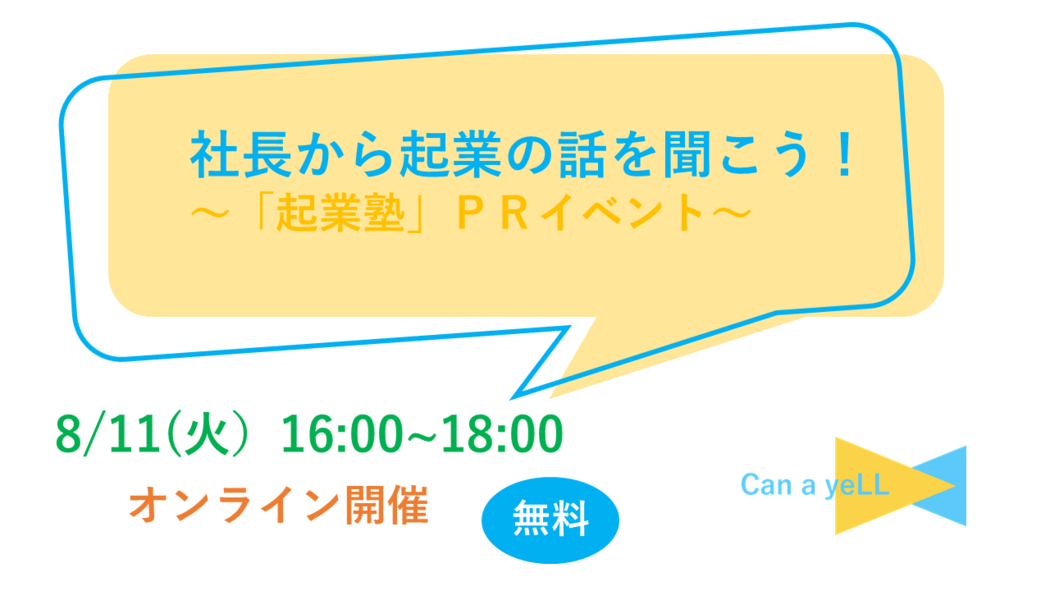 - 「オンライン:社長から起業の話を聞いてみよう!~「起業塾」企画PRイベント~」