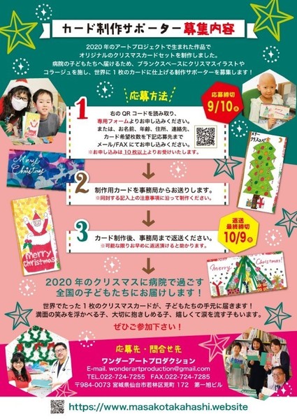 クリスマスを病院で過ごす子どもたちへカードを贈る『クリスマスカードプロジェクト』制作サポーターを大募集!18年目を迎えたホスピタルアートプロデューサー高橋雅子による本プロジェクトに是非ご参加ください!