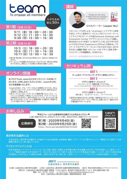 無料 ● 本プログラムは、公益社団法人東京青年会議所が実施しています。 |