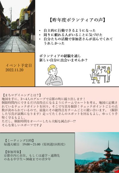 京都市内をフィールドに行うイベントの企画・運営ボランティアを募集しています!