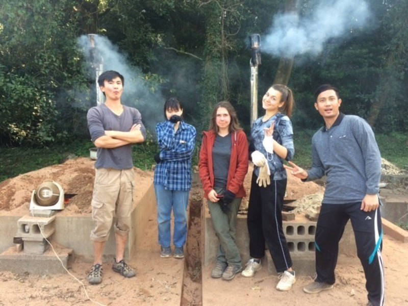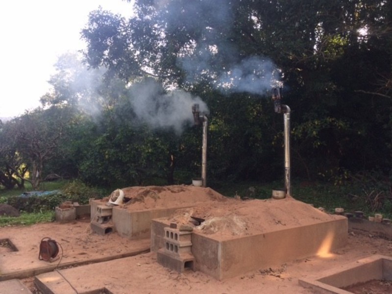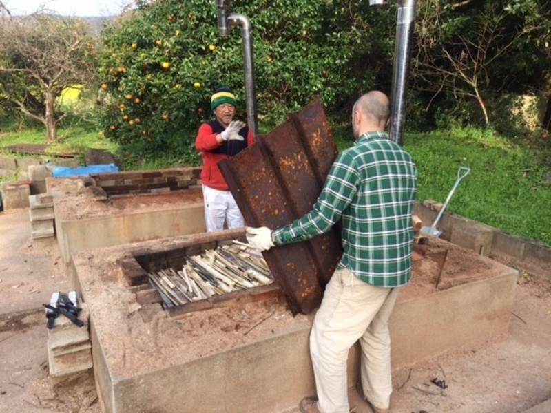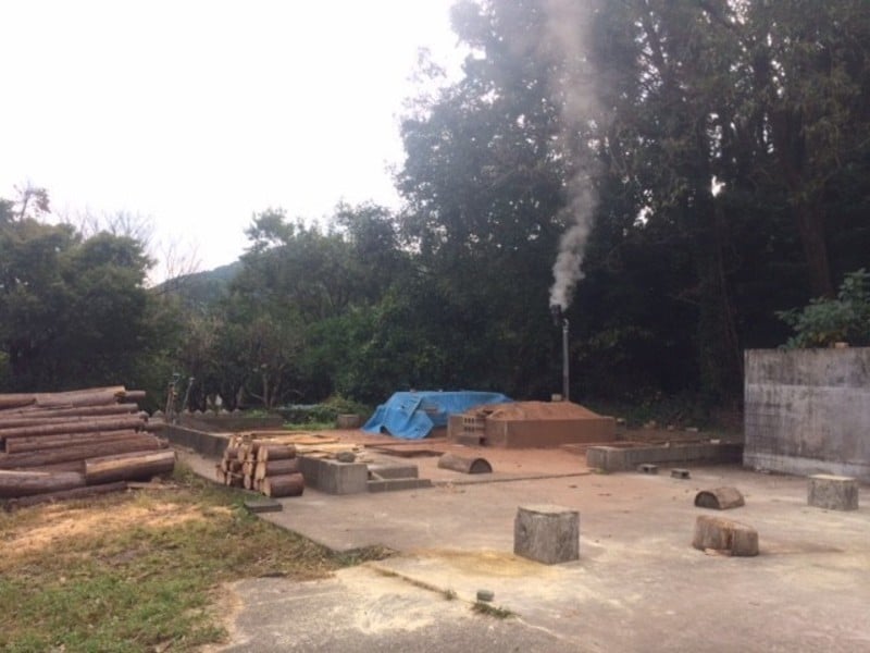 2) 石油に代わる燃料として活用するために、1)で伐採した竹で炭を作る
