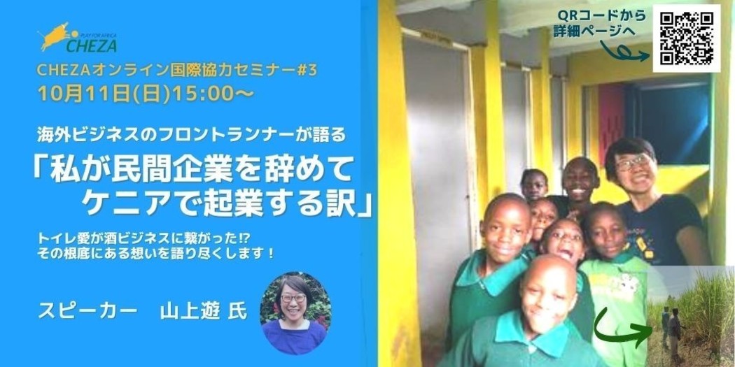 CHEZA国際協力セミナー第3弾。ゲストにお迎えするのは、大手住宅設備メーカーLIXILで6年間ケニアで無水トイレの普及事業にプロジェクトリーダーとして取り組んだ山上遊氏。現在は同社を退職され、ケニアで新たに酒造ビジネスの立ち上げ準備をされています。トイレ事業からお酒事業へ。一見無関係なようで実は繋がっている⁉