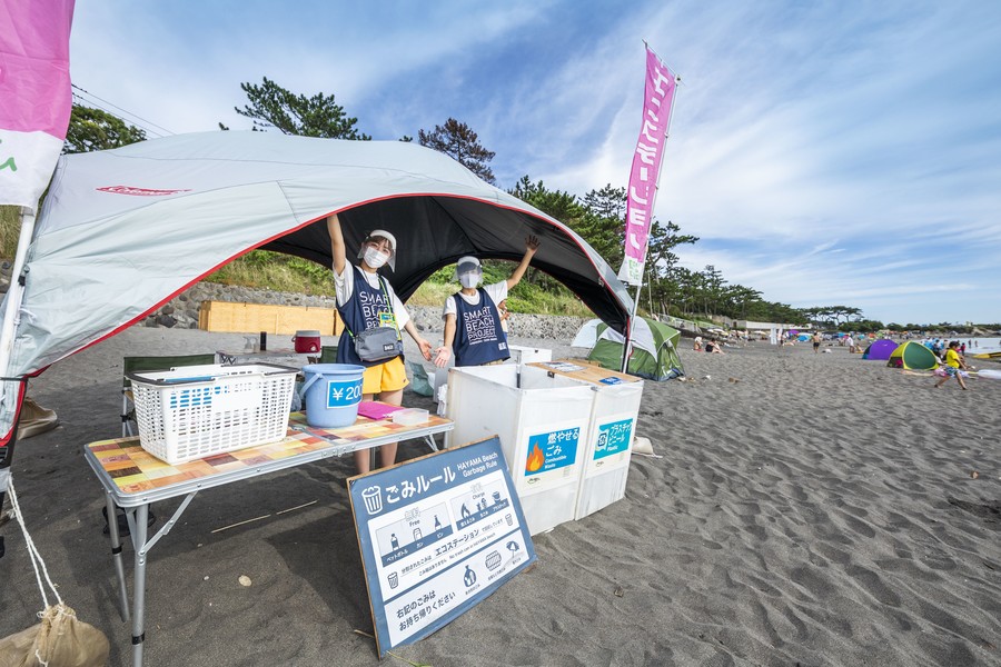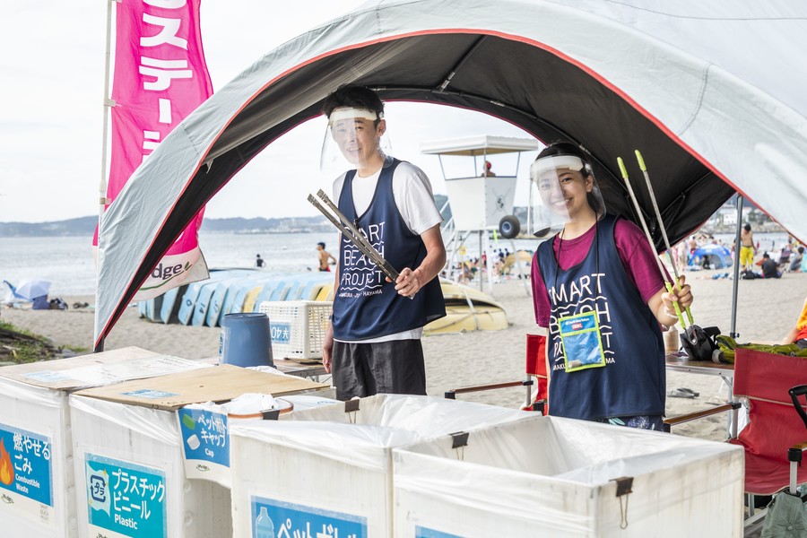 エコステーションに立ち、ごみを捨てにきた来場者に対して分別を呼びかけます。