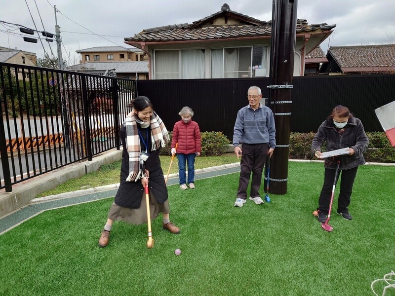 グランドゴルフ!シニアの方々はなかなか倒せませんよ…
