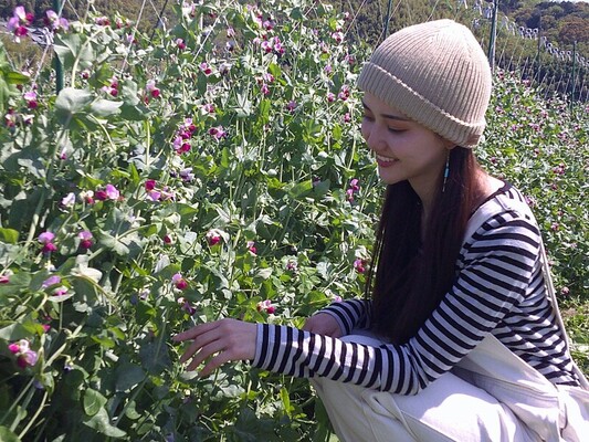 大自然に囲まれた緑あふれる農園で、ストロベリー水族館のモデル活動に
