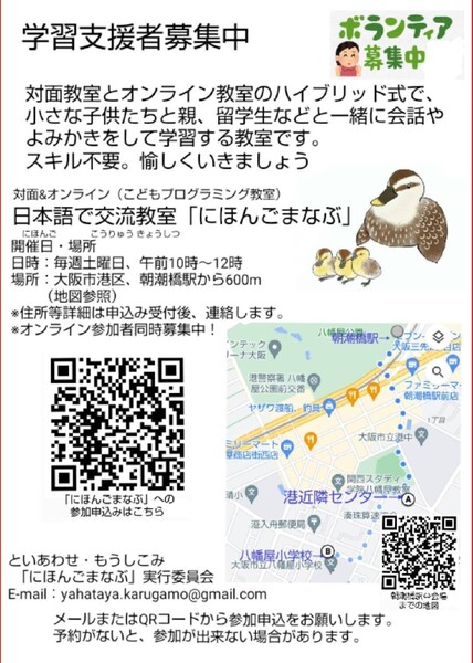 外国人の育児中の親が子供を連れて学習が出来る教室として運営しています。