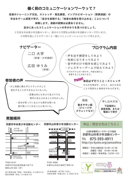 - 働くまえのコミュニケーションワーク ~伝わる事の楽しみを感じる~ 参加者募集