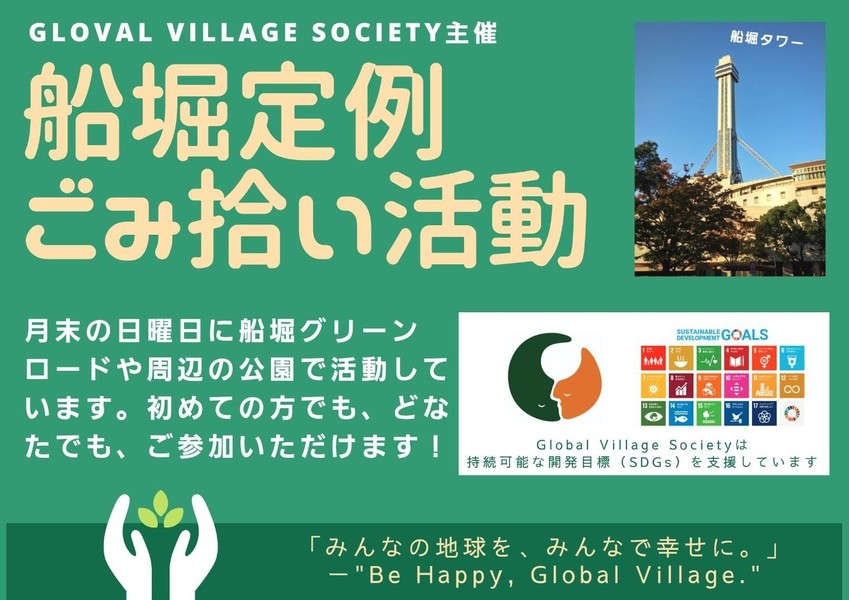 毎月最終週の日曜日の夕方頃、Global Village Society(通称グロービル)主催で行っているごみ拾い活動です。SDGsの17の目標を意識しながら、海・川・陸などの豊かな自然環境を持つ江戸川区で、まずは私たちにできることから海洋プラスチック問題や美しいまちづくりに取り組んでいます。ごみ拾い活動が初めての方のご参加や、ご家族・ご友人同伴でのご参加も、大歓迎です。実際に体を動かしながら楽しく活動できるよう、スタッフ一同、真心を込めてサポートいたします。