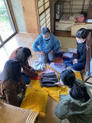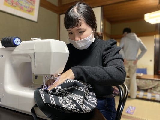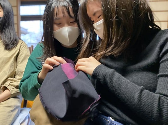 地域の方からいただいた着物をリメイクして、帽子を制作!2021年はじめには、マルシェやワークショップを行なって、この帽子を作ったり販売したりする企画を実施予定です!