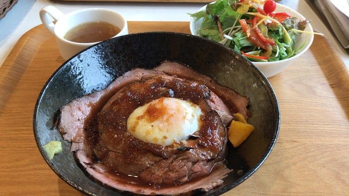 ランチは近くのカフェ「フェリシア」さんに行きました!ローストビーフ丼が絶品です!