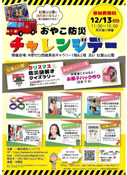 - 12/13 【中野】体験型親子防災イベント運営補助ボランティア募集