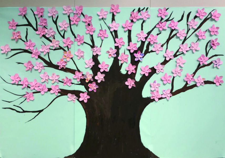 去年は桜の風車を多くの方に作って貼っていただき、大きな桜の木を完成させました!