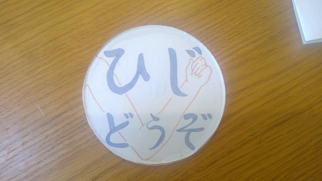 ➁アクリル板の大きさに合わせて紙に「ひじどうぞ」とかき、10枚程度コピーする