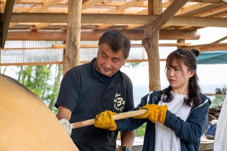 ●減災体験伝承プログラム用の炊事場にボランティアとピザ窯創り設置