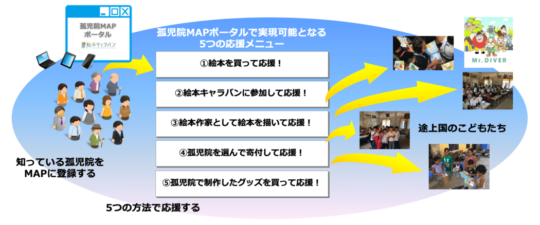 【孤児院MAPポータルで実現可能となる5つの応援メニュー】