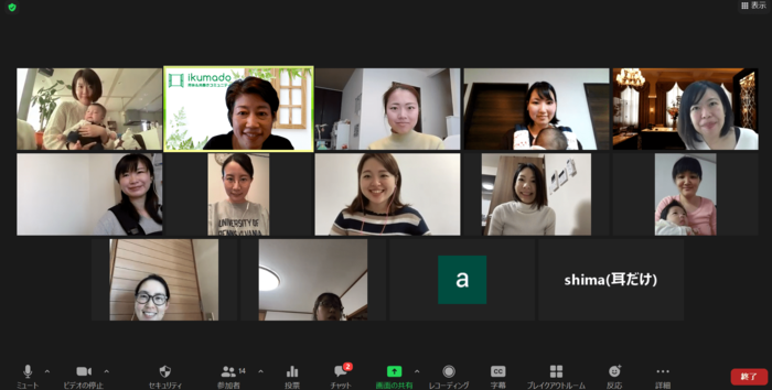 育児についての勉強会や情報交換会を全てオンラインで行っています。