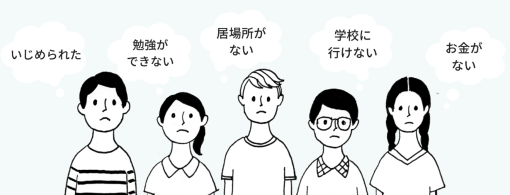 「10代の孤立」は、不登校・中退・家庭内不和・経済困窮・いじめ・虐待・進路未定・無業などを背景に、10代がいくつかの所属先や安心できる場を失ったことによって起こります。