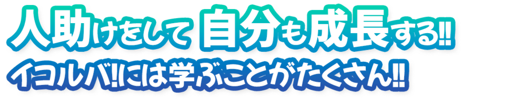 それぞれ答えは違うと思いますが、イコルバ!では、ボランティア活動を、「誰かを助けながら、自分も成長する活動」と定義づけています。