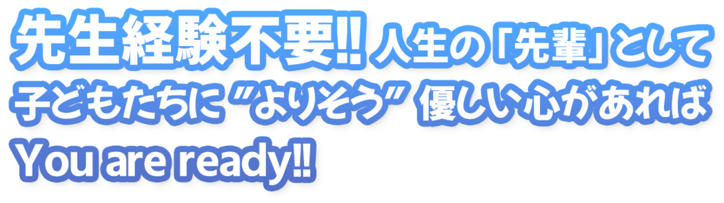 大事なのは、子どもたちに寄り添う優しさですので、先生未経験の方も積極的にご応募くださいね!