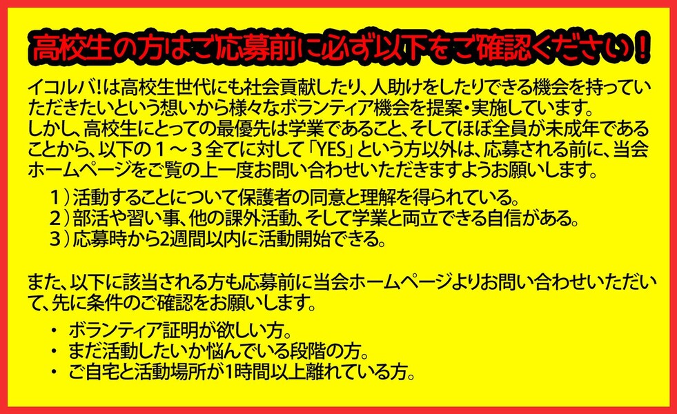イコルバ!では、高校生メンバーも活躍しています!継続ボランティアで高校生がガッツリ参加できる場所はなかなかないという声を聞きますが、イコルバ!では、高校生だからとか、大学生だからとか、そんなことは一切考えません。