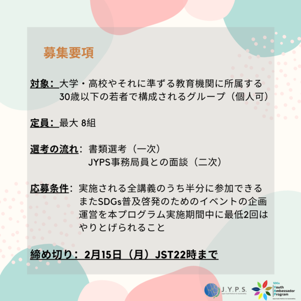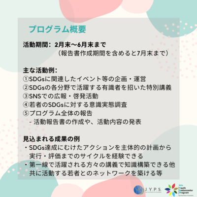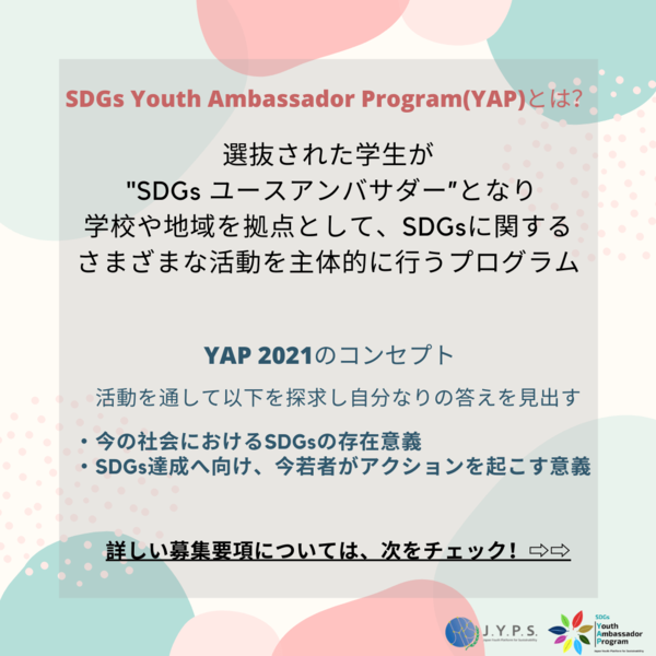 【JYPS事務局主催:SDGs Youth Ambassador Program 2021】アンバサダー募集