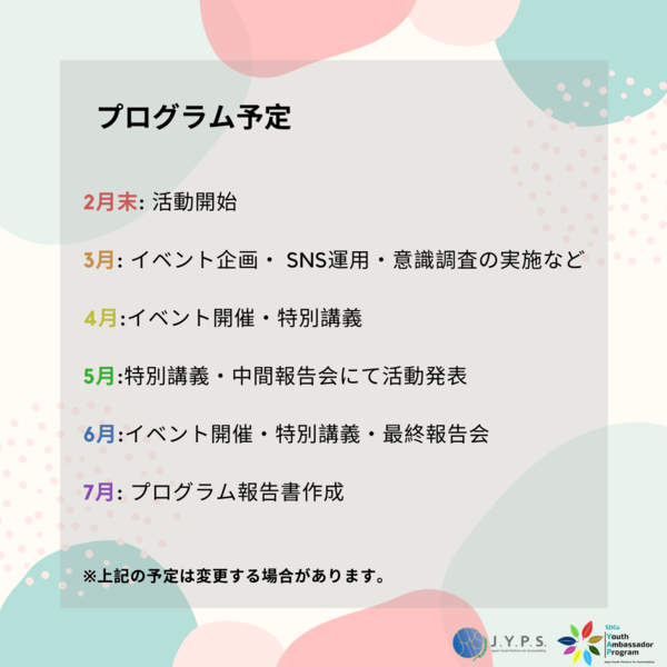 今回JYPS事務局主催で、全国の若者が主体となって活動する「SDGs Youth Ambassador Program」を開催する運びとなりました!