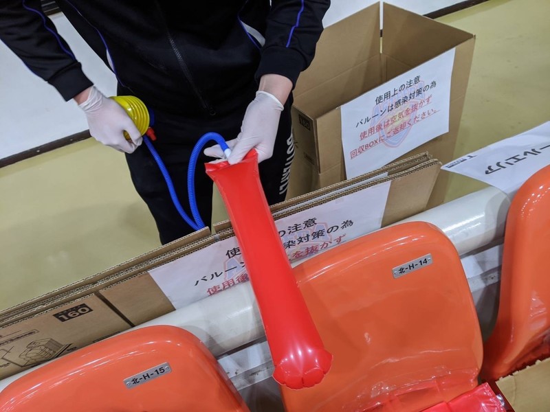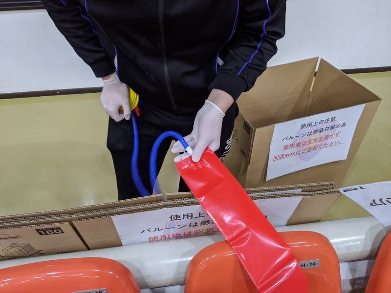 「琉球」の掛け声に合わせて手拍子やスティックバルーンを使って応援しています!