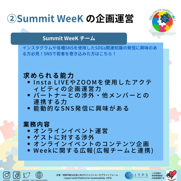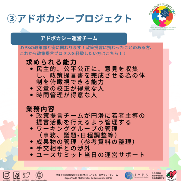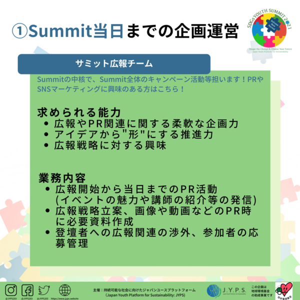- SDGs ユースサミット 2021若者の運営メンバー募集!!締切3/19まで!