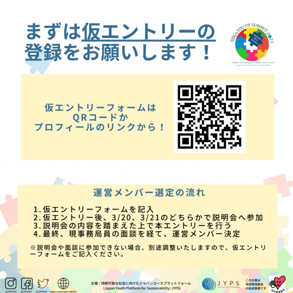 この募集の受入団体「持続可能な社会に向けたジャパンユースプラットフォーム」をフォローして、