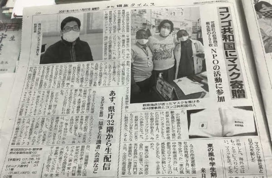 日本中から布マスクを集め、コンゴ民主共和国でウイルスに関する授業を行い、マスクをプレゼントする「なかよしマスクプロジェクト」が現地の正月ニュースで報道され、日本でもNHKを始めとするTV,新聞各紙で取り上げていただきました。