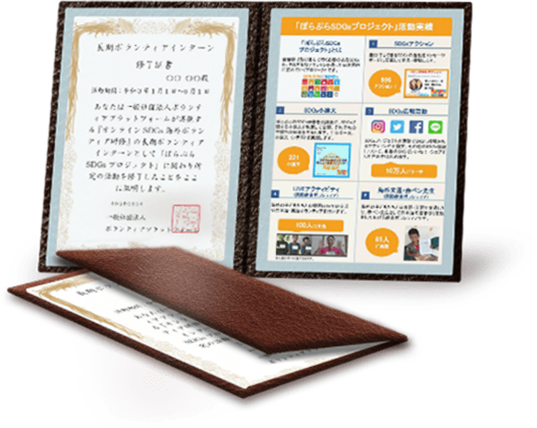 SDGs研修、コミュニケーション研修、海外ボランティア実践をとおして着実に成長することができご自身の強みになります。また「海外ボランティア修了証書」を授与させていただきますので実績として進路や就職でご活用いただくこともできます