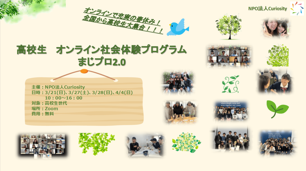 - 【高校生大募集!!】オンライン社会体験プログラム『まじプロ2.0』