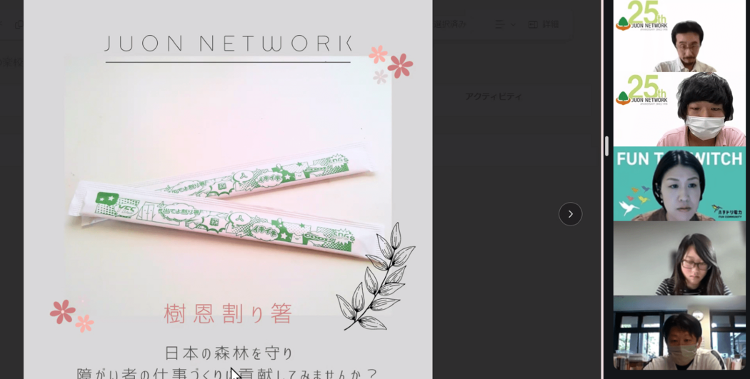 今回のテーマである「SNSを活用した樹恩割り箸の広報」を行いました。