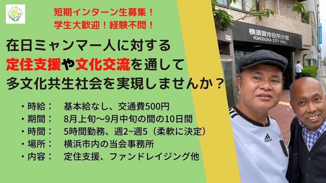 - 【在日ミャンマー人支援NPO】★短期インターン生募集★ 学生大歓迎!